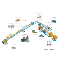 滾筒輸送機、開箱機、跌落式裝箱機、稱重剔除機、自動折蓋封箱機、自動角邊機、打包機、、供棧機、碼垛機、纏繞機等。